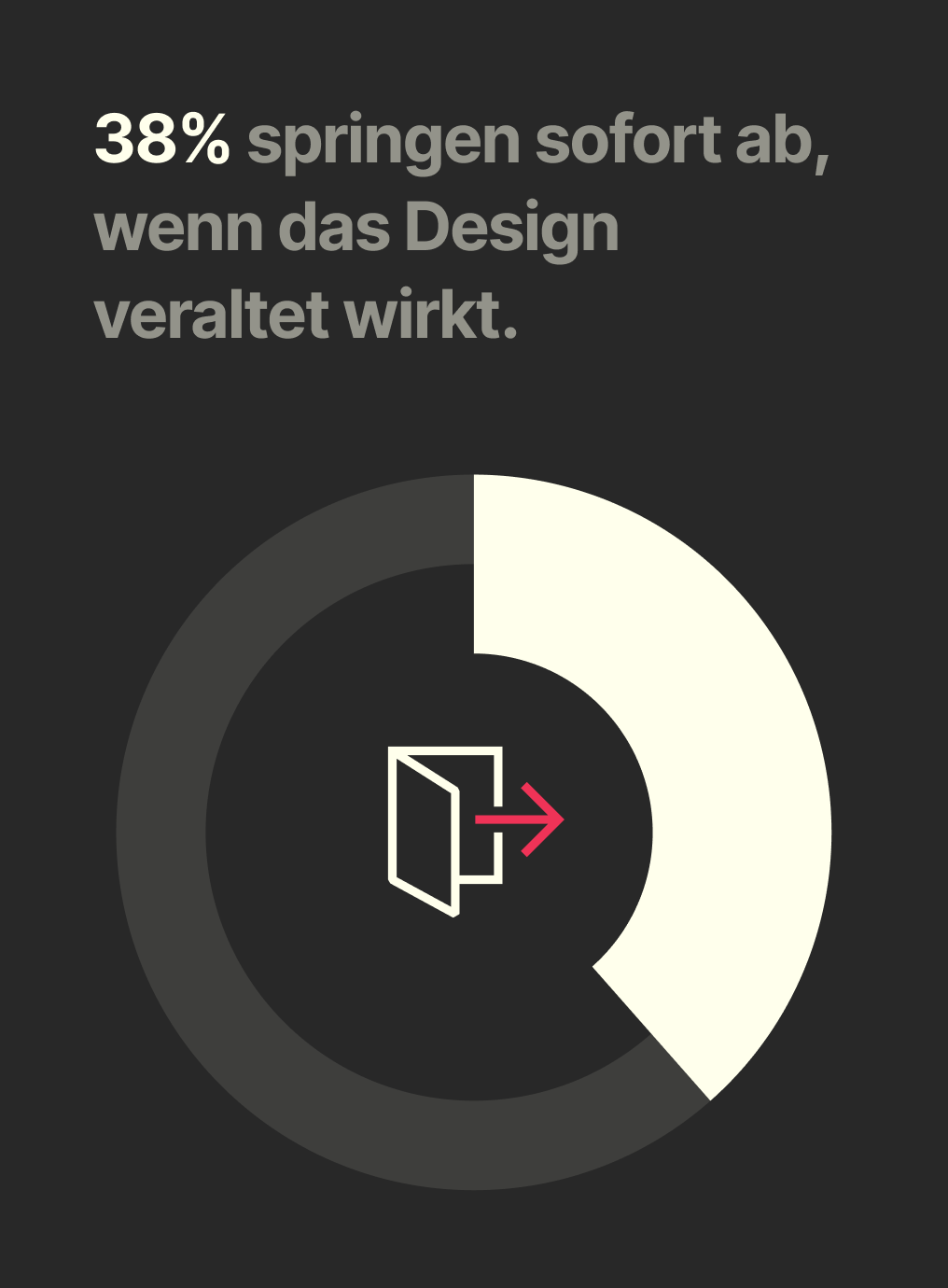 Höhere Absprungraten: 38% der Besucher verlassen eine Website, wenn das Layout unattraktiv ist (Quelle: Adobe). Jeder dieser Besucher ist eine verpasste Chance.